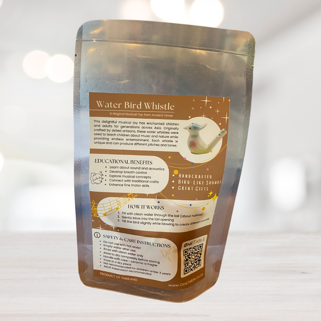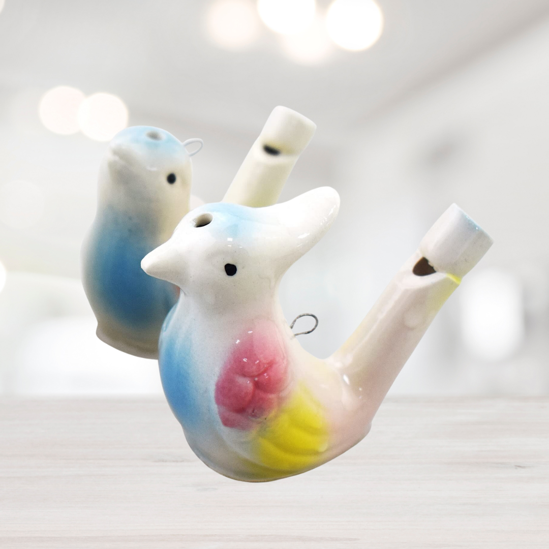 Materials Handcrafted from glazed ceramic using traditional techniques Cultural Heritage This delightful musical toy has enchanted children and adults for generations across Asia. Originally crafted by skilled artisans, these water whistles were used to teach children about music and nature while providing endless entertainment. How It Works The secret lies in the water! When filled and blown into, the water creates magical bird-like sounds as it moves inside the whistle. Each whistle is unique and can produce different pitches and tones.